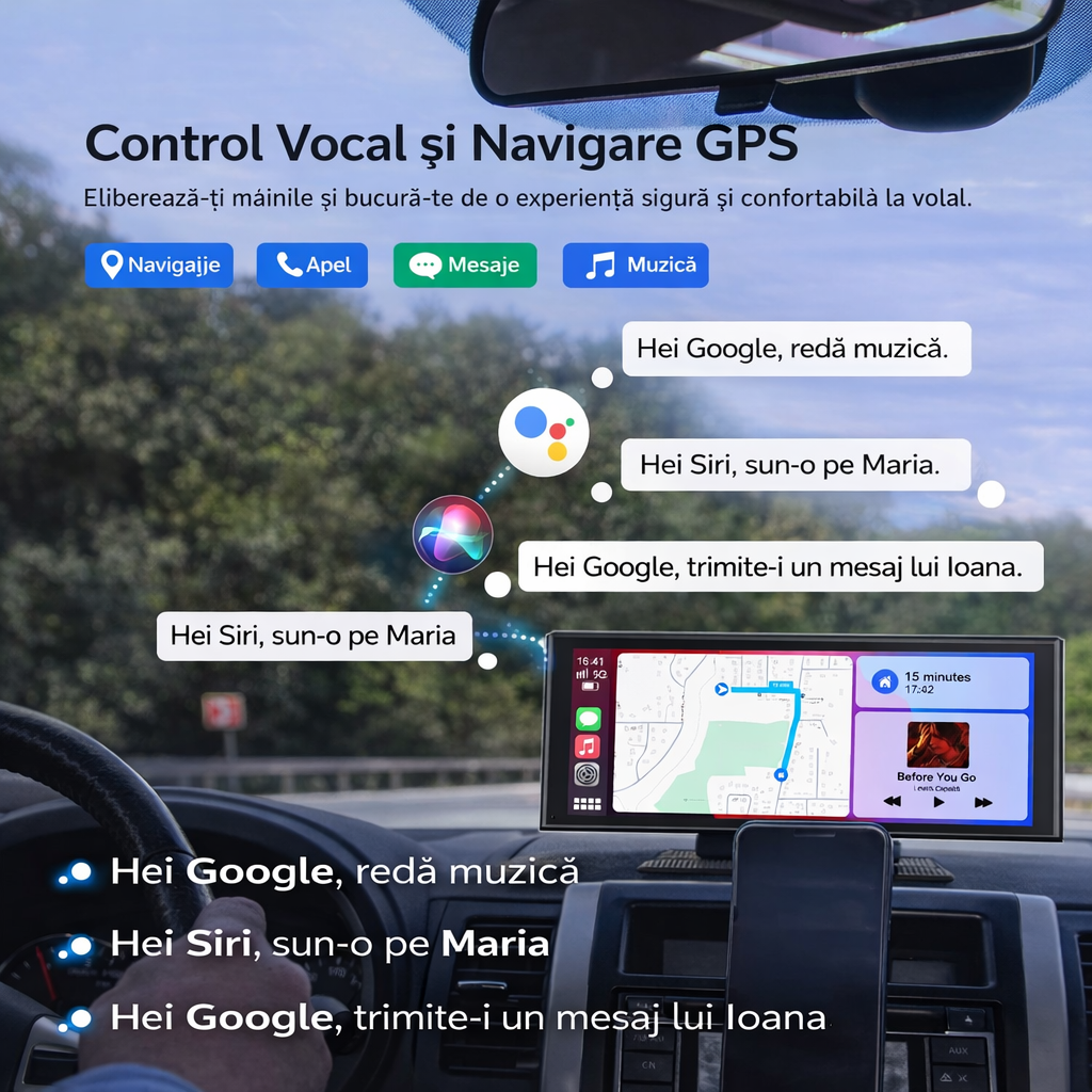 O alegere excelentă. Ecranul funcționează impecabil, microfoanele sunt clare și permit conversații foarte bune la telefon. Este cea mai simplă soluție pentru a avea o experiență de condus mai sigură, fără instalări complicate.